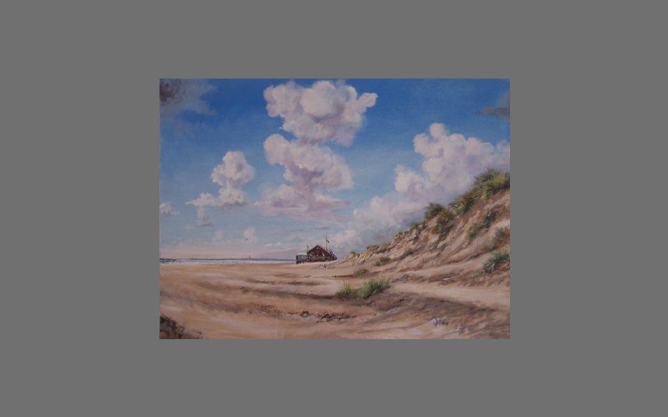 Allebei niet lang na elkaar overleden en grote maatjes met het uitlaten aan de Maas. In opdracht gemaakt, olieverf op doek, 30 x 40 cm